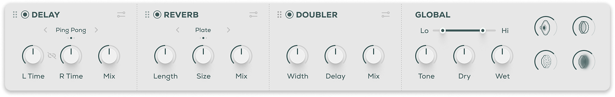 3 Rearrangable Effects: Doubler, Delay, Reverb