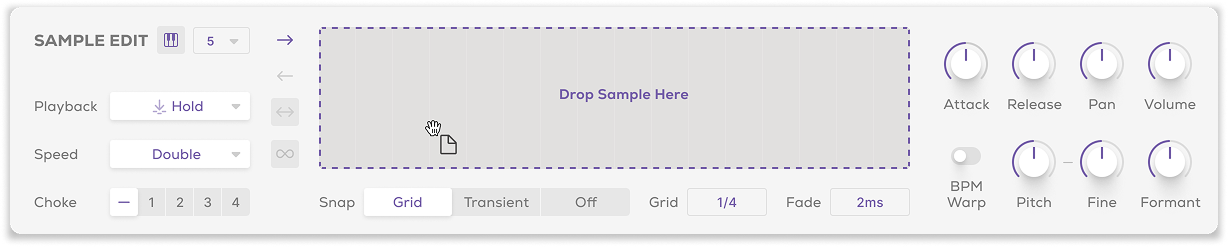 Make the Bloom instrument your own with the ability to drag and drop audio files into it. You can do this via the waveform view on the edit page or any empty slot on the banks page. Set the key and BPM of your samples to make them integrate seamlessly with the Bloom engine.