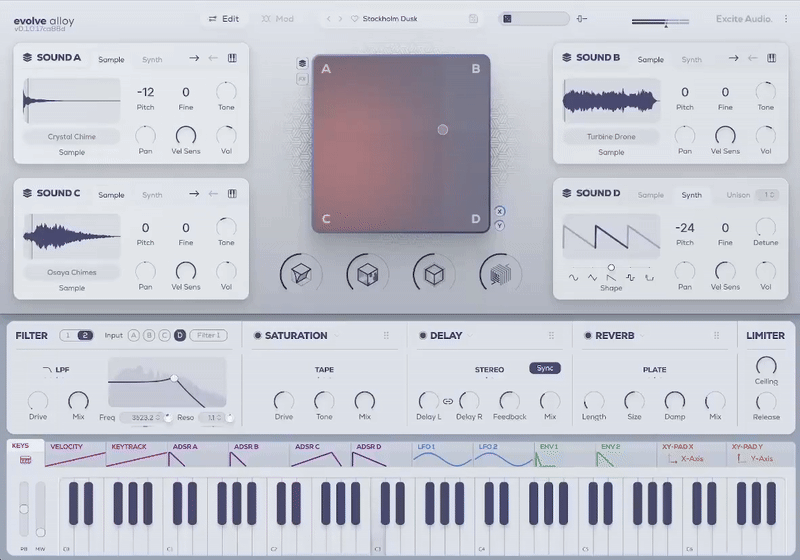 Whether it’s the crystal-clear bell-like tones of ambient and minimalism, the resonant metallic scrapes of industrial techno or the energetic plucks of modern hyperpop, Evolve Alloy has been designed to make the deep sonics of these complex sounds accessible and intuitive.