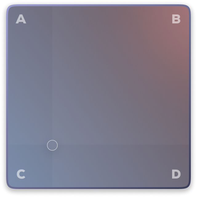 Use the XY Pad in "Sounds Mode" to blend between the four sound sources or use it in FX mode to modulate any available parameter in the instrument.