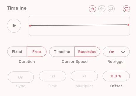 Take control of your modulation, trim and warp your path’s timing freely to generate endless ideas. You might, for example, choose to record a slow, careful movement with your mouse and then speed it up. Or you may carefully design a complex point-by-point and set it to play very slowly, transforming a static loop into a continually evolving pattern.