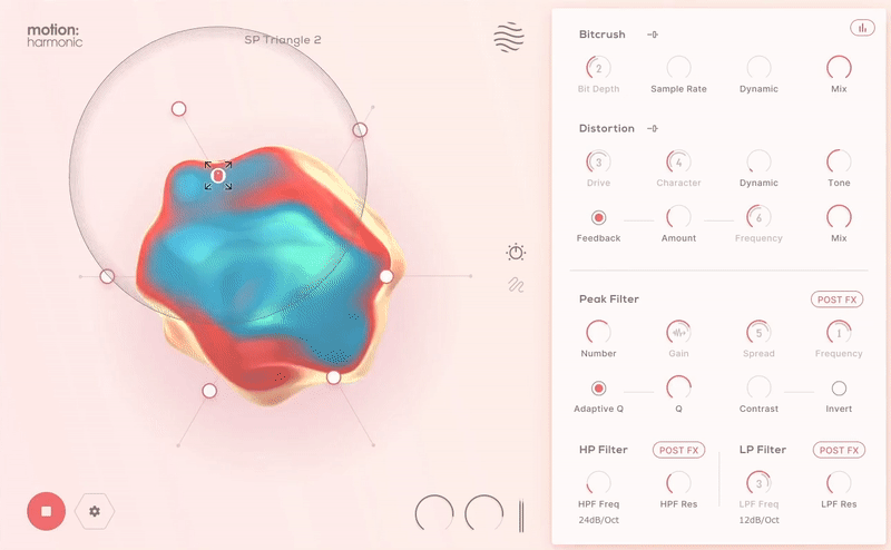 Motion: Harmonic opens up new frontiers in distortion, filtering and bitcrushing, placing you at the centre of a dynamic and responsive sound-shaping experience. Transforming your audio signal is now an animated, visually-led and creative experience with the innovative and reactive Hexagon controller.